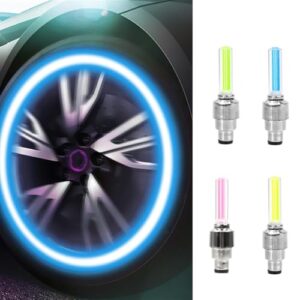4個 LEDタイヤバルブキャップ 車のタイヤ用ライト 自動車用スマートセンサー付きLEDフラッシュタイヤホイールバルブキャップライト自転車自転車オートバイ社外 汎用 簡単取付