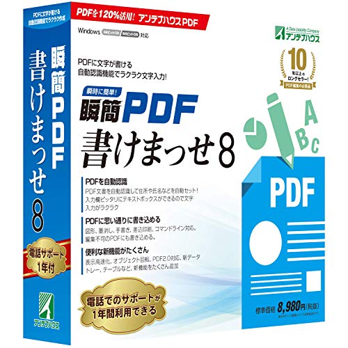 瞬簡 PDF 書けまっせ 8は、簡単にPDF文書を作成・編集できるソフトです。多彩なテンプレートや直感的な操作で、ビジネス文書や報告書をすばやく作成可能。さらに、セキュリティ機能も充実しています。