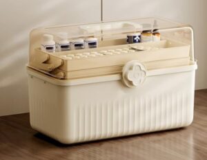 3層プラスチック仕切り収納ボックス、ハンドル付き多機能プラスチックツールボックス、救急箱薬箱大容量、収納ボックスおしゃれで持ち運び簡単、裁縫、メイクアップ、薬、ネイル、子供用ヘアアクセサリー用 (XL 39*23.2*26cm,ホワイト)