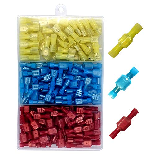 / Kiligen 160個6.3 × 0.8mmプレミアムT型 配線コネクター 完全絶縁ナイロンオス/メススペード端子セット、クイック切断配線ワイヤー圧着端子コネクタキット (赤30ペア、青30ペア、黄20ペア)