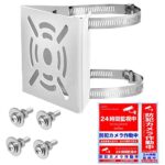 Co-Goods取付金具は、円柱・角柱対応のカメラブラケットスタンドです。ステンレスバンド2本、ボルトセット4式、防犯ステッカー3枚が付属しており、すぐに使用可能なフルセットです。(色:白)
