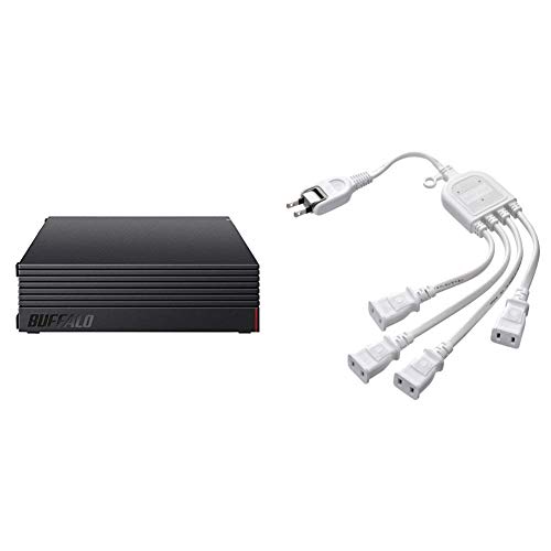 【セット買い】【Amazon.co.jp限定】BUFFALO 外付けハードディスク 4TBは、テレビ録画やPC、PS4、4K対応。静音でコンパクトな日本製。故障予測機能付き。サンワサプライのACアダプタ専用電源延長コードは2P4分岐対応。