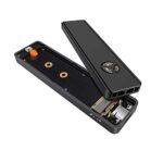 M.2 NVMe外付けSSDケース。USB3.1 Type-C Gen 2対応、10Gbps通信速度。2280/2260サイズのM-Keyに対応し、内蔵ファンで冷却。携帯用で簡単操作。