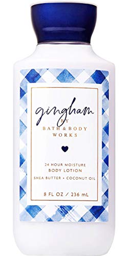 バス&ボディワークスのボディローションは、シアバターとビタミンEを配合したスキンケア製品です。236ml入りで、肌をしっとりと保湿し、優しい香りでリラックス効果も。ギンガムデザインでおしゃれなバスルームにぴったりです。