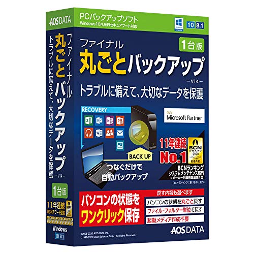 AOSデータ ファイナル 丸ごとバックアップ (V14) 1台版は、PC全体のデータを安全にバックアップできるソフトです。直感的な操作で、迅速にバックアップや復元が可能。データの安心を提供します。
