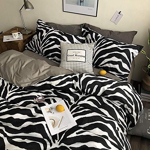SOFUTOYO 布団カバーセット シングル ダブル クイーン 布団カバー 綿 掛け布団カバー ベッド用 布団用 シーツ 和式・洋式 フラットシーツ 枕カバー ピローケース 寝具カバーセット ふとんカバー 布団 カバー ピーチスキン加工 柔らかい 北欧 モダン おしゃれ(ゼブラ柄, クイーン・4点セット) 高価買取中