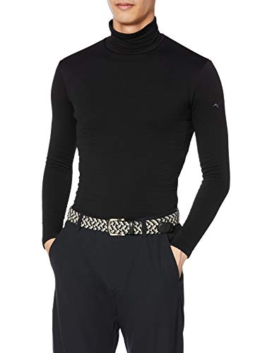 ミズノのゴルフインナーウェア、バイオギアデラックスウォーム。発熱素材使用で暖かいハイネック長袖。ストレッチ性があり、スポーツやアウトドア、釣りにも最適。カラー: ブラック、サイズ: XL。