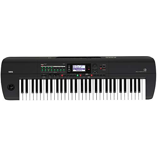 KORG i3 MBは、61鍵の軽量ミュージックワークステーション。スーパーマットブラック仕上げで、音楽制作やライブパフォーマンスに最適。電池駆動も可能で、アダプターが付属。