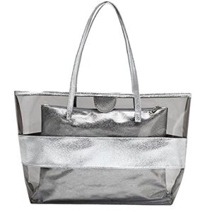 KARRESLY 2 in 1 クリアショルダーバッグ PVC 防水 トラベルバッグ ビーチ ハンドバッグ ジム スポーツ コスメ トートバッグ パース US サイズ: Free size カラー: シルバー