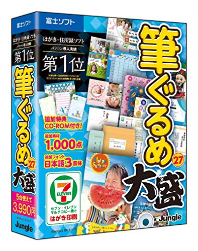 筆ぐるめ 27 大盛は、筆文字名刺や年賀状、封筒、ラベルなど多彩な印刷物を簡単に作成できるはがき作成ソフトです。豊富なデザインテンプレートや、直感的な操作で初心者でも安心して利用できます。