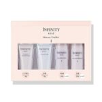 コーセー インフィニティ スキンケア トライアル キット Ⅰは、洗顔、化粧水、美容液、クリームなどが含まれたスキンケアのトライアルセットです。肌の潤いを保ち、ハリを与えるアイテムが揃っています。旅行や初めての方に最適なサイズです。