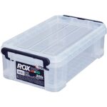 天馬の耐久性に特化した日本製収納ボックス「ロックス300S」。防災にも最適なクリアケースで、幅20×奥行35×高さ11cmのサイズ。小物や日用品の整理に便利なプラケースです。