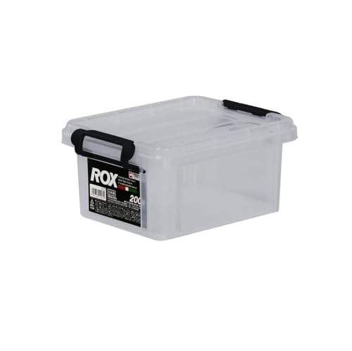 天馬の耐久性に特化した収納ボックス、ROX 200Sは日本製で、防災にも適したクリアケース。小物整理に最適で、サイズは幅16cm、奥行21cm、高さ10cmです。
