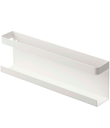 山崎実業の神札ホルダーは、約W25×D4×H8cmのサイズで、石こうボード用プッシュピンと木ネジが付属します。シンプルなホワイトデザインで、簡易神棚としても使え、お札や破魔矢の収納に便利です。