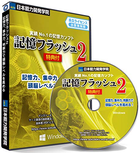 記憶フラッシュは記憶術による能力開発ソフト。記憶力を3倍から5倍アップし、集中力や判断力を高める内容。初級から上級まで対応し、認知症予防や脳の若返りに役立ちます。