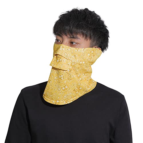 ホワイトビューティー フェイスカバーC型は、UVカット機能を備えた男性用マスクです。イエローペイズリー柄で、紫外線対策や日焼け防止に最適です。