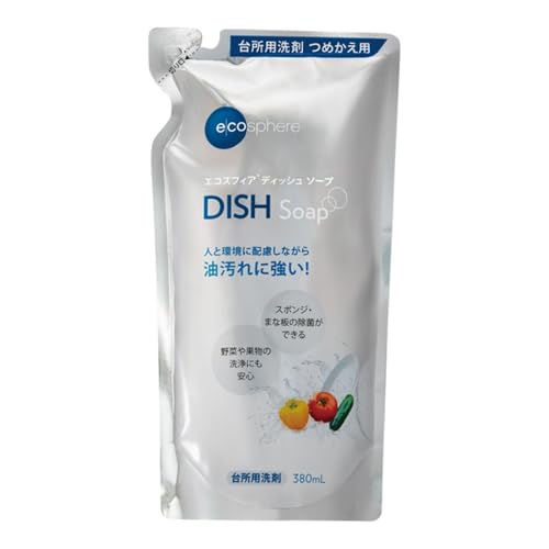 ニュースキンのエコスフィア ディッシュ ソープ レフィル(380mL)は、油汚れに強い無香料の液体洗剤です。まな板やスポンジの除菌ができ、野菜や果物のつけ置き洗いも対応しています。