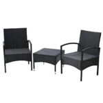ガーデンマスターのラタン調ガーデンテーブル&チェア3点セットは、ダークブラウンのスタイリッシュなデザイン。テーブル×1点、チェア×2点で、お庭やベランダ、テラスに最適です。