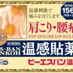 ビーエスバン温膏は、体の痛みやこりに効果がある第3類医薬品です。温感成分が血行を促進し、緊張を和らげる助けとなります。156枚入りが2セットのパッケージです。