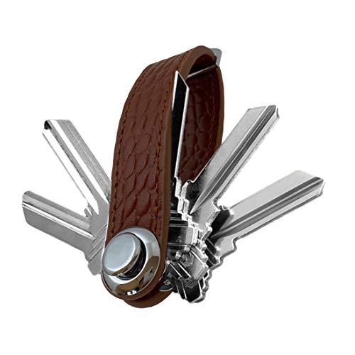 高品質な本革を使用したキーケース兼マルチツール。大容量で、メンズ・レディース問わず使えるブラウンのデザイン。鍵や小物をしっかり収納し、持ち運びに便利です。