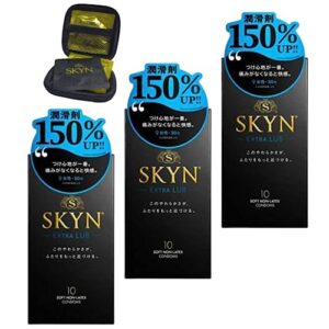 SKYN 潤滑ゼリー増量タイプ 痛み緩和 Extra Lubコンドーム 10個 ×3箱 【ケース&ローションセット】