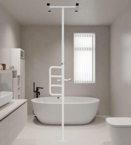 iimono117の自立型トイレ用手すりは、工事不要で簡単に設置できます。立ち上がりを助け、介護や転倒防止に効果的です。シニア向けの補助用品として最適。