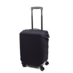 エースのスーツケースカバー、マッフル Sサイズ(57cm)は無地のブラックデザインで、ポケッタブル仕様。持ち運びやすく、旅行時のスーツケース保護に最適です。