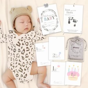 Amakai マンスリーカード 足型 月齢フォトグッズ 手形 台紙 ベビー 月齢カード 手形 足形 台紙 リバーシブル 命名紙 手形 足形 リボンクリップクリアボード付き 安定感あり 収納便利 長期保管可能 0歳〜3歳 毎月の思い出 30種類15枚 出産準備 誕生日 ギフト