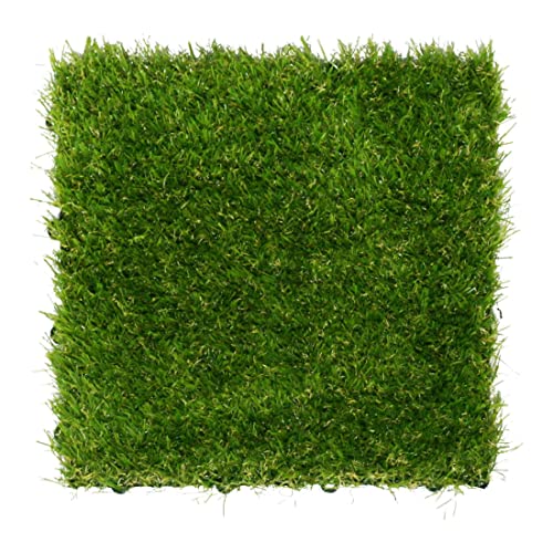 金源リビングのジョイント式人工芝マット27枚セット。サイズ30x30cmで簡単にDIY可能。庭やベランダに最適で、リアルな草感触を楽しめます。草取り不要でふかふかの使い心地。