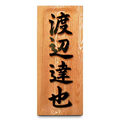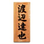 一位の木材を使用した表札です。浮き彫りと舟底彫りの技法で、立体感のあるデザインが魅力。クリア塗装で耐久性も抜群。やや大きめのサイズで、存在感ある仕上がりです。