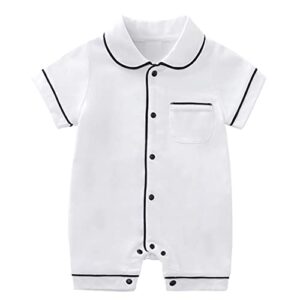 [Mon Ange] ベビー ロンパース 半袖 パジャマ風 前開き 赤ちゃん 可愛い 綿 ルームウェア 出産祝い 誕生日 お食い初め パジャマ風ロンパース (90, ホワイト)