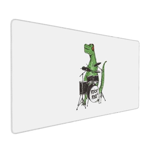 大型90x40cmのゲーミングマウスパッドです。恐竜とドラムセットのデザインで、滑り止めのゴム底が特徴。デスクパットとしてキーボードやマウス対応。仕事やゲームに最適です。
