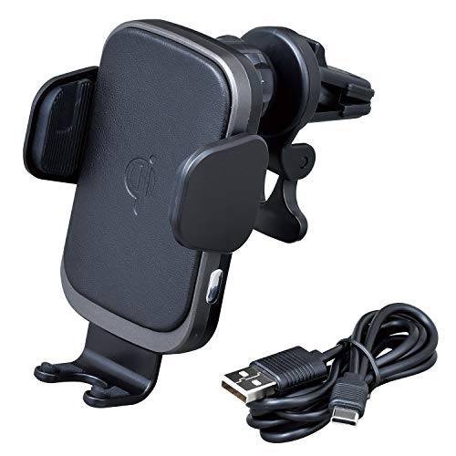 セイワ(SEIWA)のQiワイヤレス充電器ホルダーD585は、自動開閉機能と360度回転が特徴。エアコンに取り付け可能で、iPhoneやスマートフォンを5W、7.5W、10Wで充電できます。ブラックデザインでスタイリッシュ。