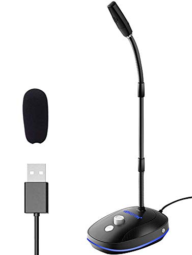UervotonのUSBマイクは全指向性で360°の集音が可能。ミュート機能や音量調節もあり、LEDランプ付き。SkypeやZoom通話、ライブ配信、ゲーム実況などに最適。PC、PS4、Windows、Mac対応。日本語取扱説明書付き。