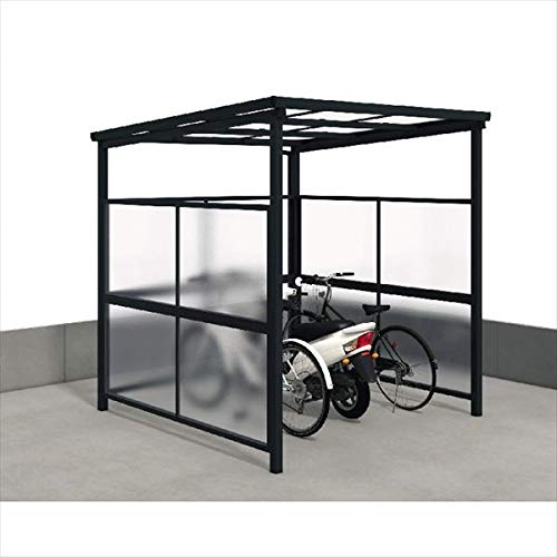 三協アルミのスマイリン2は、熱線遮断ポリカーボネートを使用した耐積雪量50cm対応の自転車置場です。ブラック色の端部柱タイプで、L型の二面構造、側面パネルは1段タイプです。受注生産品です。