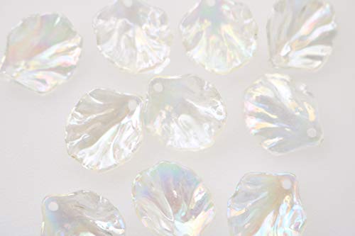 つや消し加工のオーロラアクリルフラワーパーツ(6個入り)。サイズ17mm×20mmの小さめ立体フラワーで、通し穴付き。春夏やマリン系のハンドメイドに最適なプラスチックチャームです。