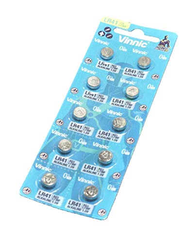 VinnicのLR41アルカリボタン電池(L736F/AG3)は10個入りで、水銀フリー。カメラやミニゲーム、体温計などのデバイスに対応した未使用のブリスターパッケージです。