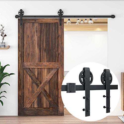 HELLO INTERIORのバーンドアは、9FT(2.74メートル)の片引き戸キットで、上吊り方式でスムーズに開閉。寝室やトイレ、収納スペースに最適。DIYにぴったりで、送料無料!