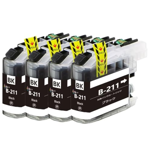 ブラザー LC211BK 大容量インク4本セットは、ブラックインクが4本入りの交換用カートリッジです。高画質な印刷が可能で、ページあたりのコストを抑えられます。対応プリンターとの相性も良く、長時間の使用が可能です。