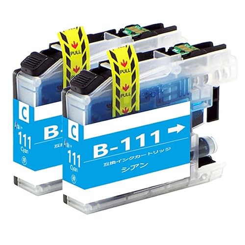 ブラザー LC111互換インクカートリッジ、シアンC 2本セット。大容量タイプで、残量表示可能なICチップ付き。高品質な印刷が可能で、大阪インクから提供。
