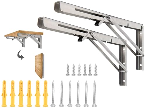 L字型のステンレス製折りたたみ金具。省スペースでDIYに最適、取り付けネジ付きの2本セット(45cm)。耐久性があり、折り畳み可能で便利です。