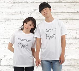 [tuzuru] マタニティフォト用 Tシャツ 2枚セット ペアルック ママ パパ mother father 半袖 白 ベビーシャワー 妊婦 衣装 撮影用 セルフフォト おしゃれ かわいい
