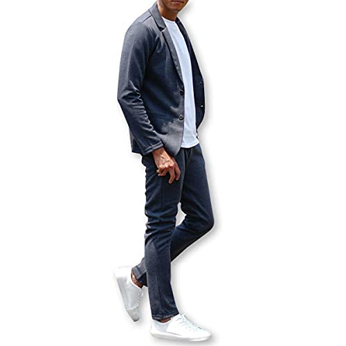 スウェットテーラードジャケットセットアップは、ストレッチ素材を使用。動きやすさと美しいシルエットで、テレワークやオフィスカジュアルに最適。モデル34500D-② Lサイズ。