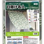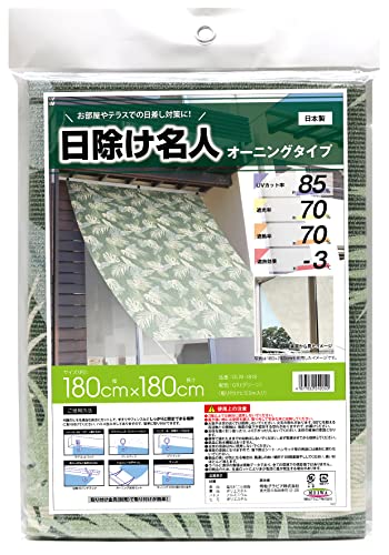 日除け名人オーニングタイプバナナリーフ柄OLM-1818は、180cm×180cmのサイズで、上下各7ヶ所にハトメがあります。取付用ヒモは5m付属しています。