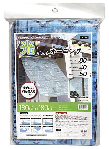光が入るオーニング パッチワークキリム柄 OTK-1818は、180cm×180cmのサイズで、ハトメ上下各7ヶ所、取り付け用ヒモ5m付きです。おしゃれなデザインで、快適なアウトドア空間を演出します。