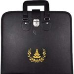 フリーメイソンのMM/WMフルドレスエプロン・アカシア製。パストマスターケース付き、USサイズ。ケースはブラックカラーで、伝統的なデザインが特徴です。