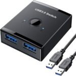 USB切替器は、2台のPC間で4台のUSB機器を手動で切り替え可能。USB3.0対応で高速転送を実現。付属の1.5m USBケーブル2本で接続も簡単。