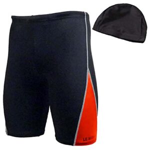 [ル モード デ トア] 競泳水着 メンズ フィットネス水着 メンズ スイムキャップ セット 901 (【ブラック&レッド】, L)