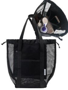 三八商店 スパバッグ メッシュバッグ 防水ポケット付き 温泉バッグ サウナ ジム 銭湯 水泳 プール ジム 温泉 大人 お風呂 トート (Sサイズ, ブラック)
