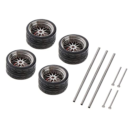 sharprepublic 4個入り RC1:64 タイヤとホイールセット。高精度の車軸とエンドキャップ付き。多サイズ対応のモデルカー用アクセサリーです。